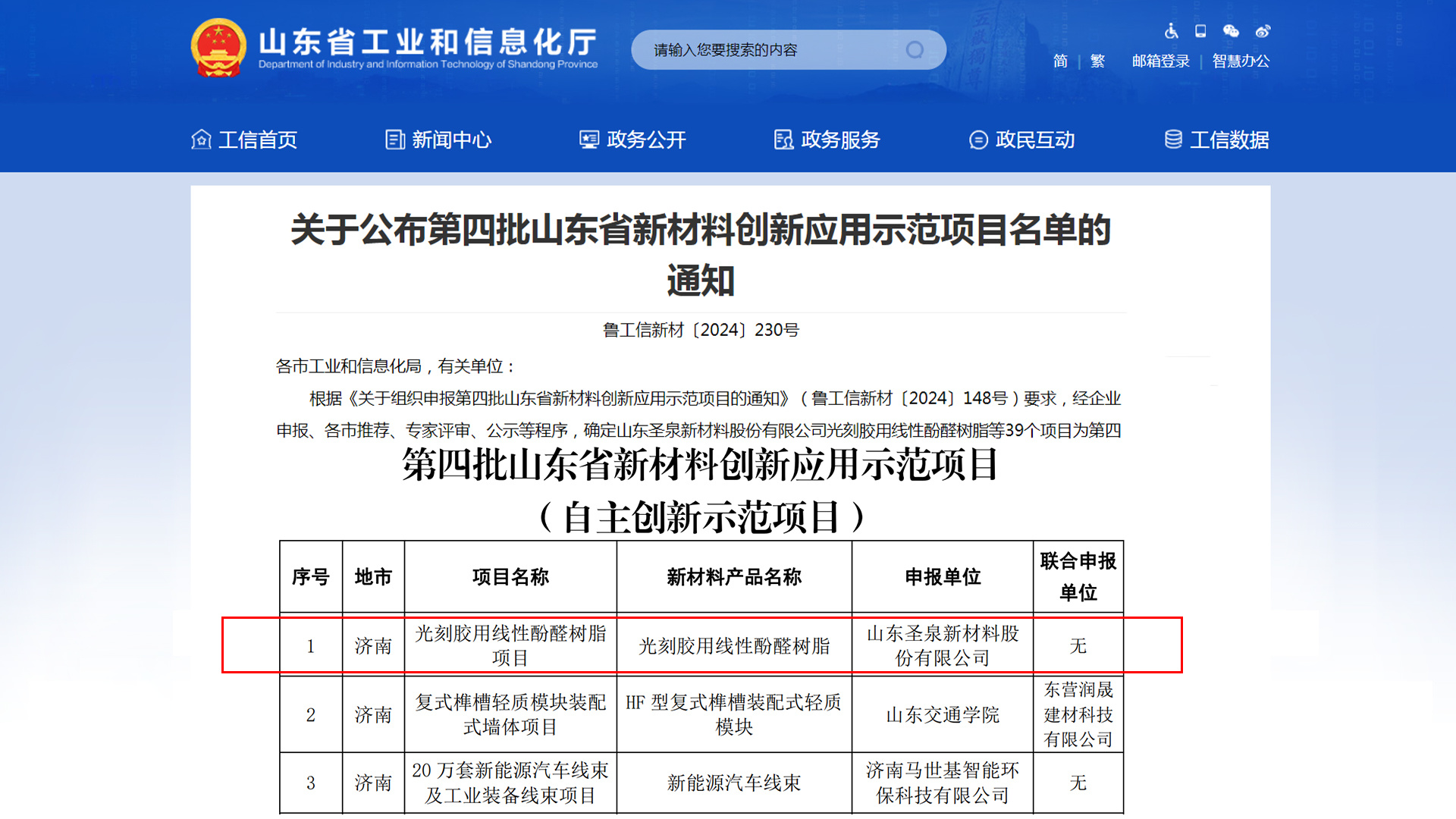 近日,山东省工业和信息化厅公布了第四批山东省新材料创新应用示范项目名单。山东圣泉新材料股份有限公司光刻胶用线性酚醛树脂项目成功入选自主创新示范项目。